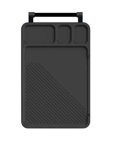 Working platform with cover made of ABS plastic with front flattening and anti-roll edge, as well as small additional storage compartments